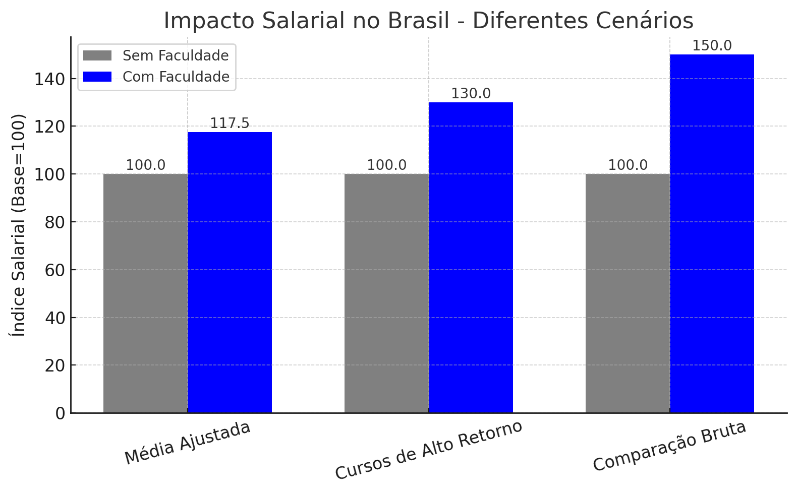 No Brasil, um diploma pode aumentar a renda em até 50% dependendo do curso e da instituição. Além do salário, ele amplia as oportunidades e garante mais estabilidade no mercado de trabalho.